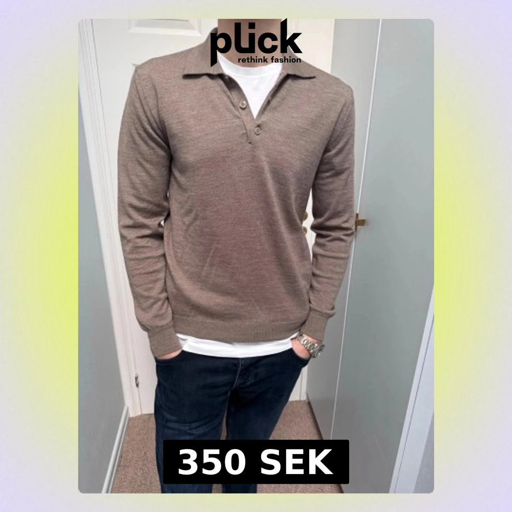 Snygg beige långärmad tröja med krage och knappar i halsen la chemise. Tillverkad i tunt, mjukt material som ger en clean look. Perfekt till jeans eller chinos för en avslappnad men stilren outfit.