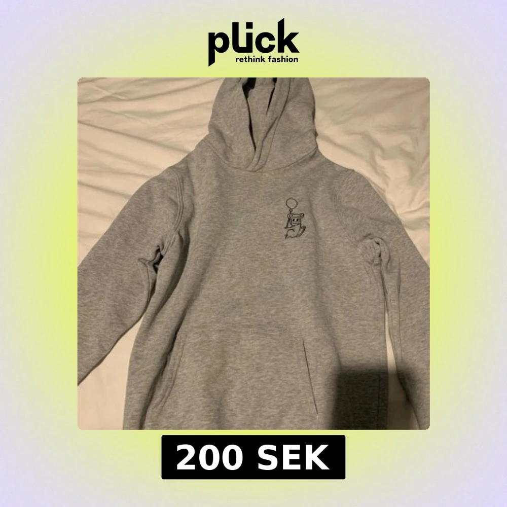 Säljer en ljusgrå hoodie från Brand Store Kids med en söt björn med ballong tryckt på bröstet. Tröjan har huva och långa ärmar, perfekt för en avslappnad stil. Mjuk och skön bomullsblandning.