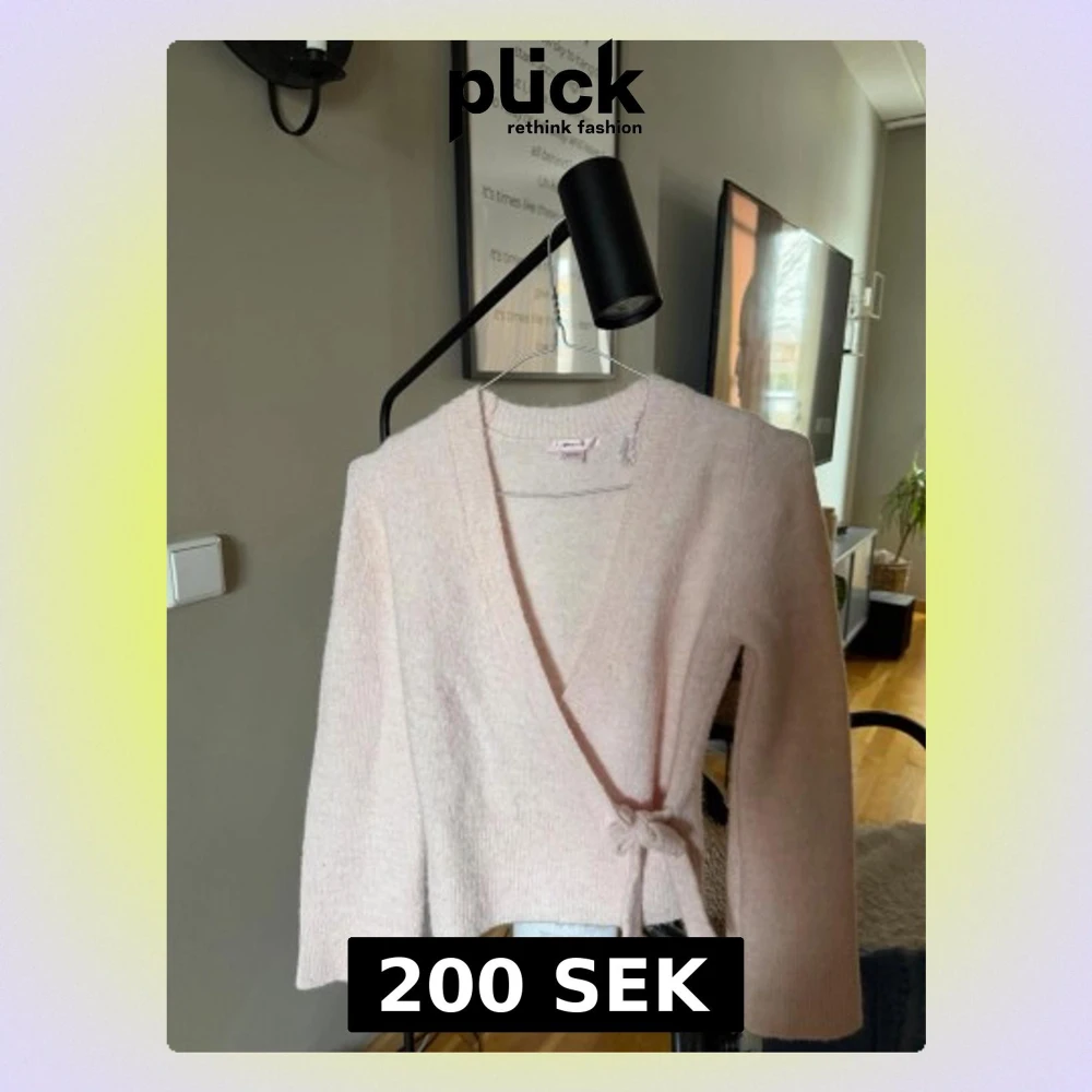 Supersöt ljusrosa omlottkofta med knytband i midjan och långa ärmar. Koftan har en mjuk och fluffig känsla, perfekt för att höja mysfaktorn. Enkel och stilren design som passar till det mesta.