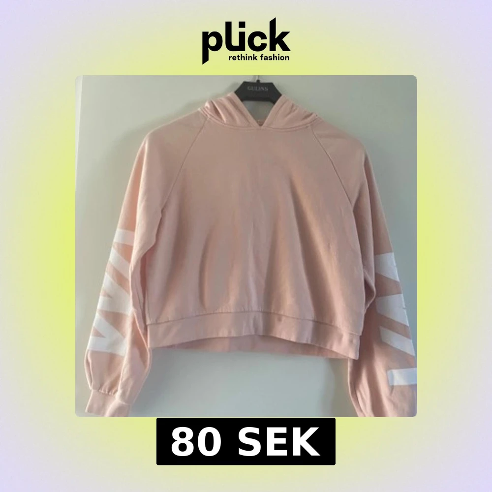 Säljer en ljusrosa hoodie från Warp med croppad passform och stora vita tryck på ärmarna. Tröjan har huva, långa ärmar och är gjord i mjuk bomullsblandning med fleece på insidan. Perfekt för chill dagar eller när du vill ha en avslappnad stil.
