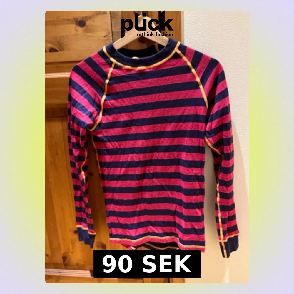 Väl använd ulltröja i bra skick. Randig i rosa och mörkblå med orangea sömmar. Skön, stretchig och bekväm. Djur och rökfritt hem. Storlek 160 från Ullmax. Säljes då den är för liten.