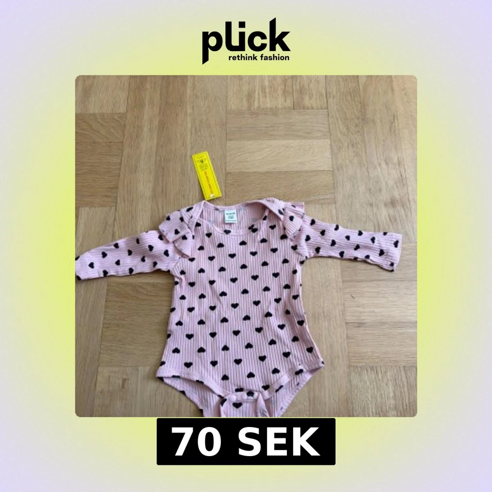 Supersöt rosa ribbad body med svarta hjärtan och volangdetaljer vid axlarna. Långärmad modell med knappar i grenen för enkel påklädning. Perfekt för små trendsetters! 3-6 månader oanvänd. Ingår även ett matchande hårband
