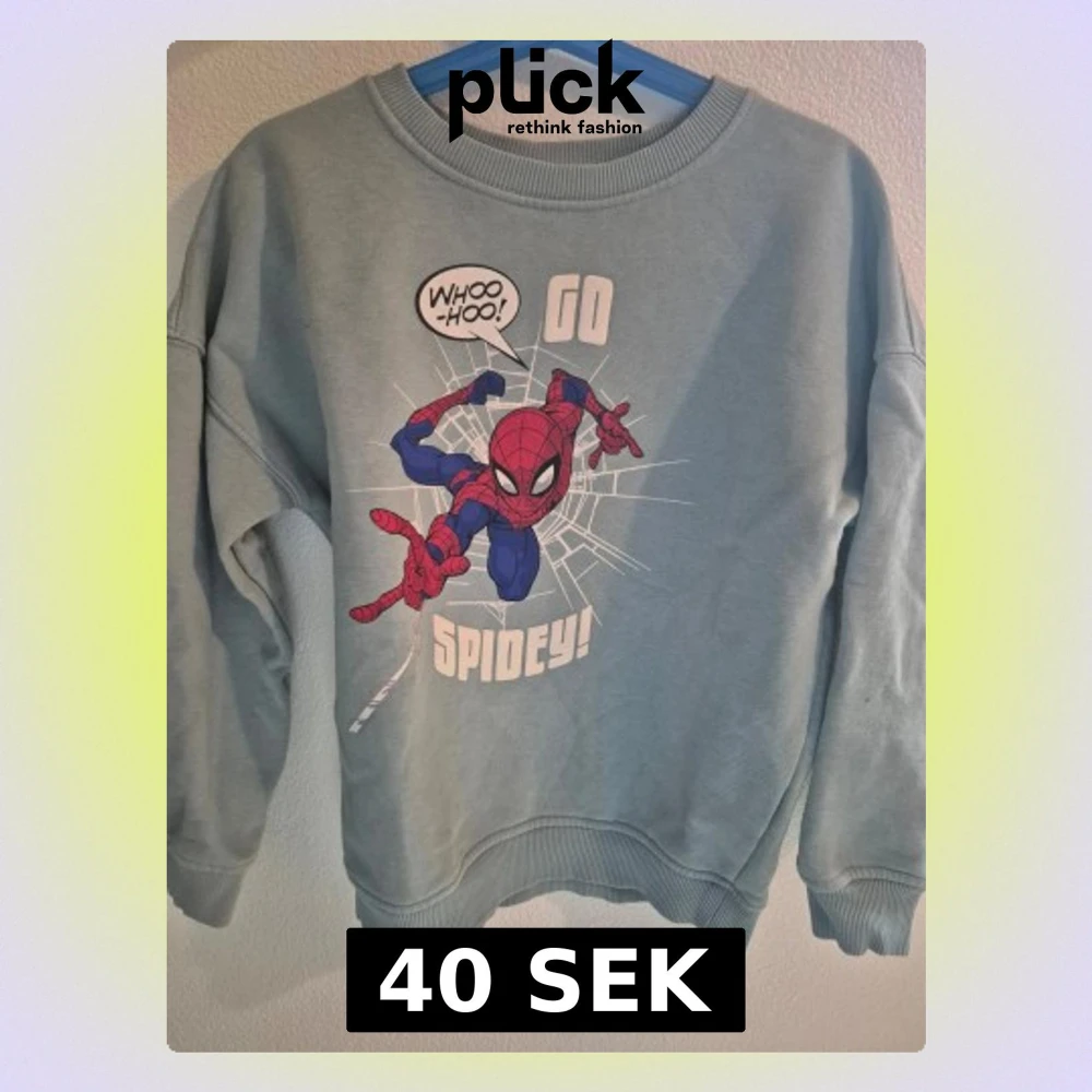 Cool blå sweatshirt med Spiderman-tryck och texten 'GO SPIDEY!'. Tröjan har rund hals och långa ärmar, perfekt för dig som gillar Marvel och vill sticka ut med en färgglad och bekväm tröja.