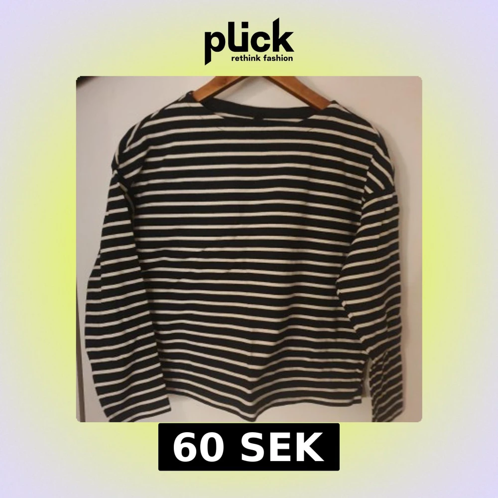 Säljer en stilren svartvit randig tröja med långa ärmar. Perfekt för en avslappnad look. Tröjan har en normal passform och är tillverkad i ett mjukt material.