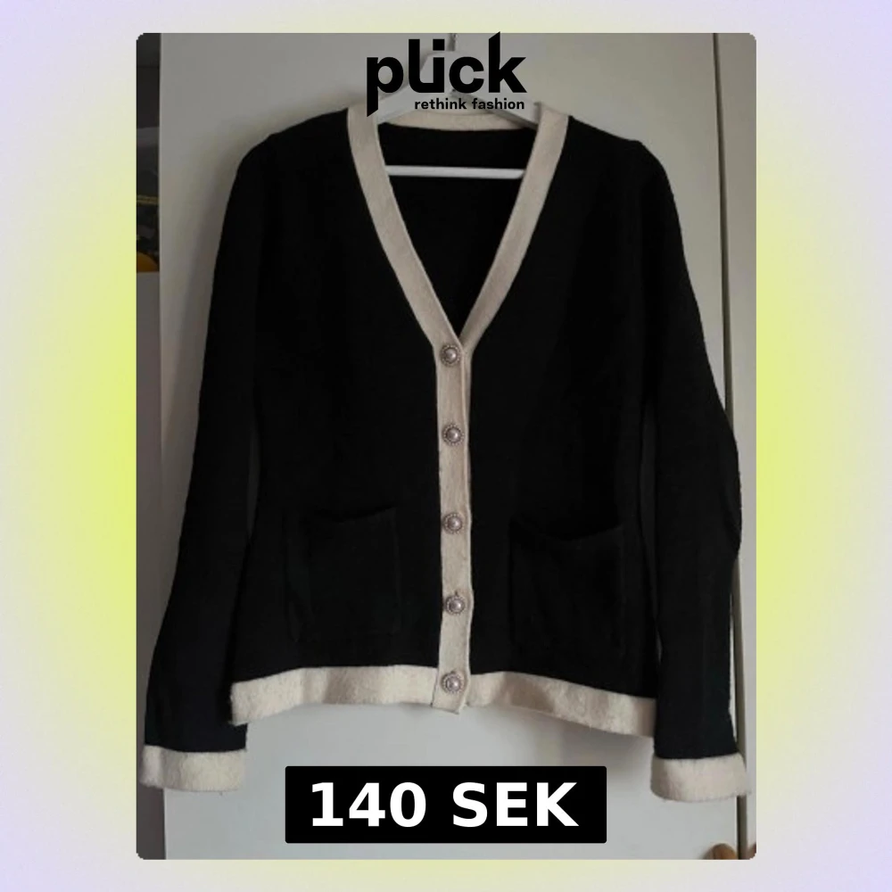 Svart kofta med pärlknappar