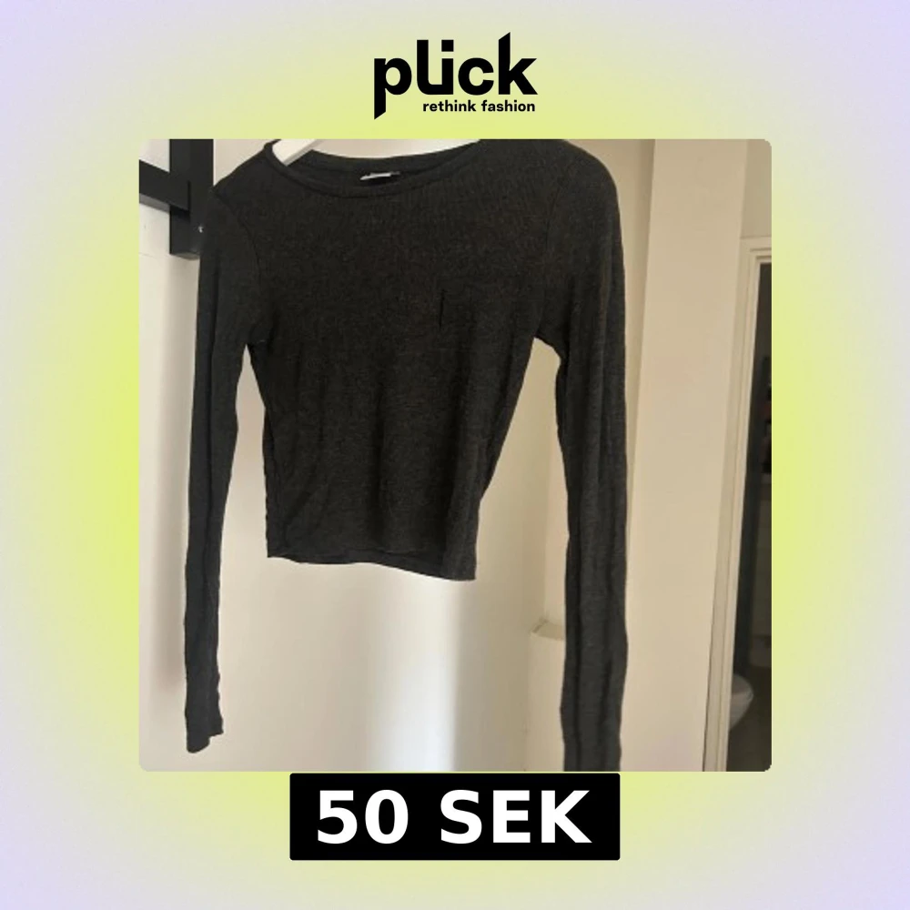 En enkel och stilren mörkgrå långärmad tröja med ribbad struktur. Tröjan har en rund halsringning och är något croppad i modellen, vilket ger en modern och avslappnad look. Perfekt att matcha med jeans eller kjol.