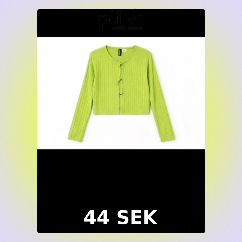 Trendig ljusgrön ribbad kofta med långa ärmar. Croppad modell som ger en cool och modern look. Perfekt att styla över ett linne eller t-shirt för en extra pop av färg.
