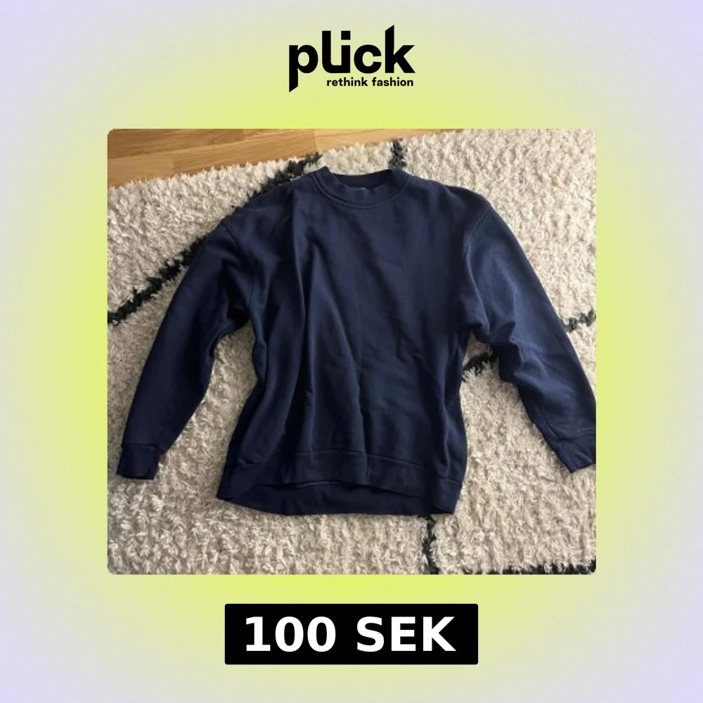 En enkel och stilren mörkblå sweatshirt med rund hals och långa ärmar. Oversized, simpel och clean tröja i storlek M
