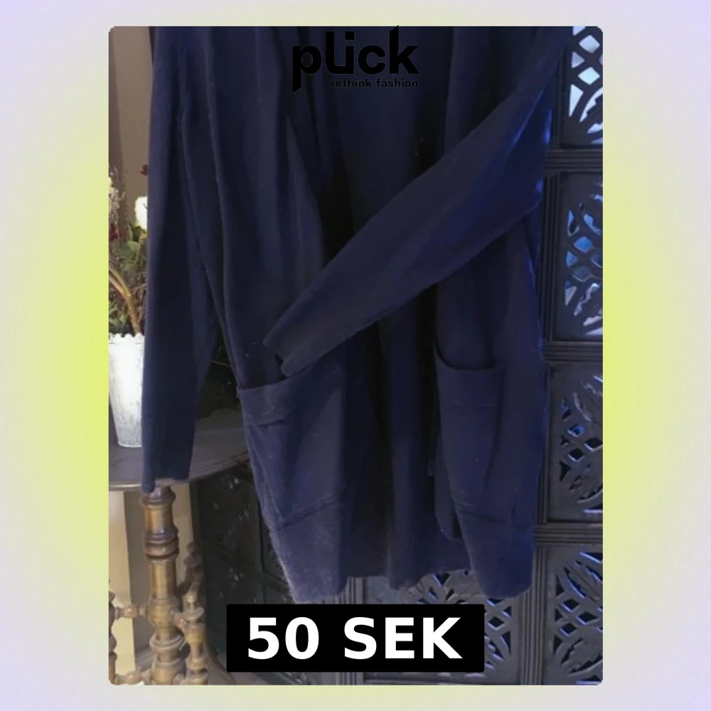 Mysig mörkblå kofta i mjuk velour med två stora fickor framtill . Perfekt för att chilla hemma och hålla sig varm under kalla dagar Enkel och stilren design utan synligt märke.