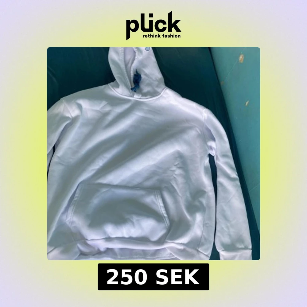 Vit hoodie med blått graffiti-inspirerat tryck på huvan och grova blå snören. Klassisk känguruficka framtill och mjukt material som känns skönt mot huden. Perfekt för dig som gillar streetstyle och vill sticka ut lite extra.