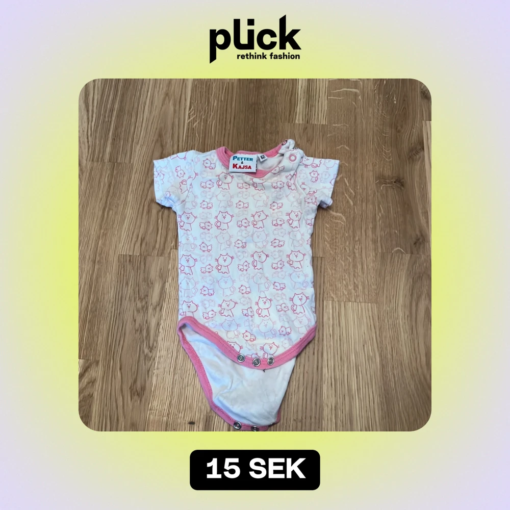 Vit och rosa body med katter på i storlek 62 från Petter & Kajsa