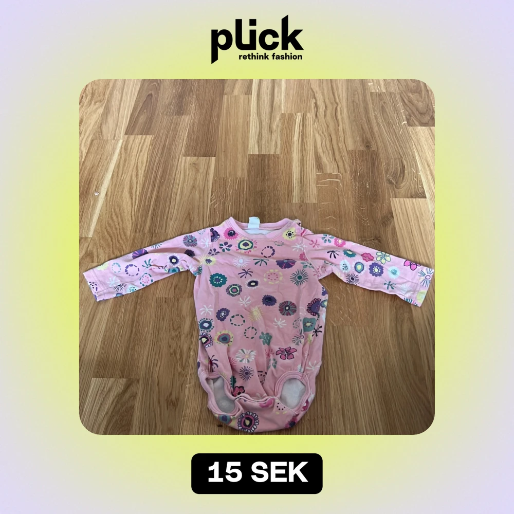 Söt rosa body med blommigt mönster i flera färger från Parvel. Den har långa ärmar och praktiska tryckknappar vid axeln och grenen. Perfekt för de minsta! 🌸