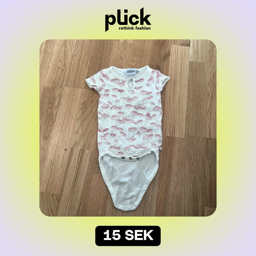 Vit body med rosa detaljer i storlek 68 från ”Ebbe”