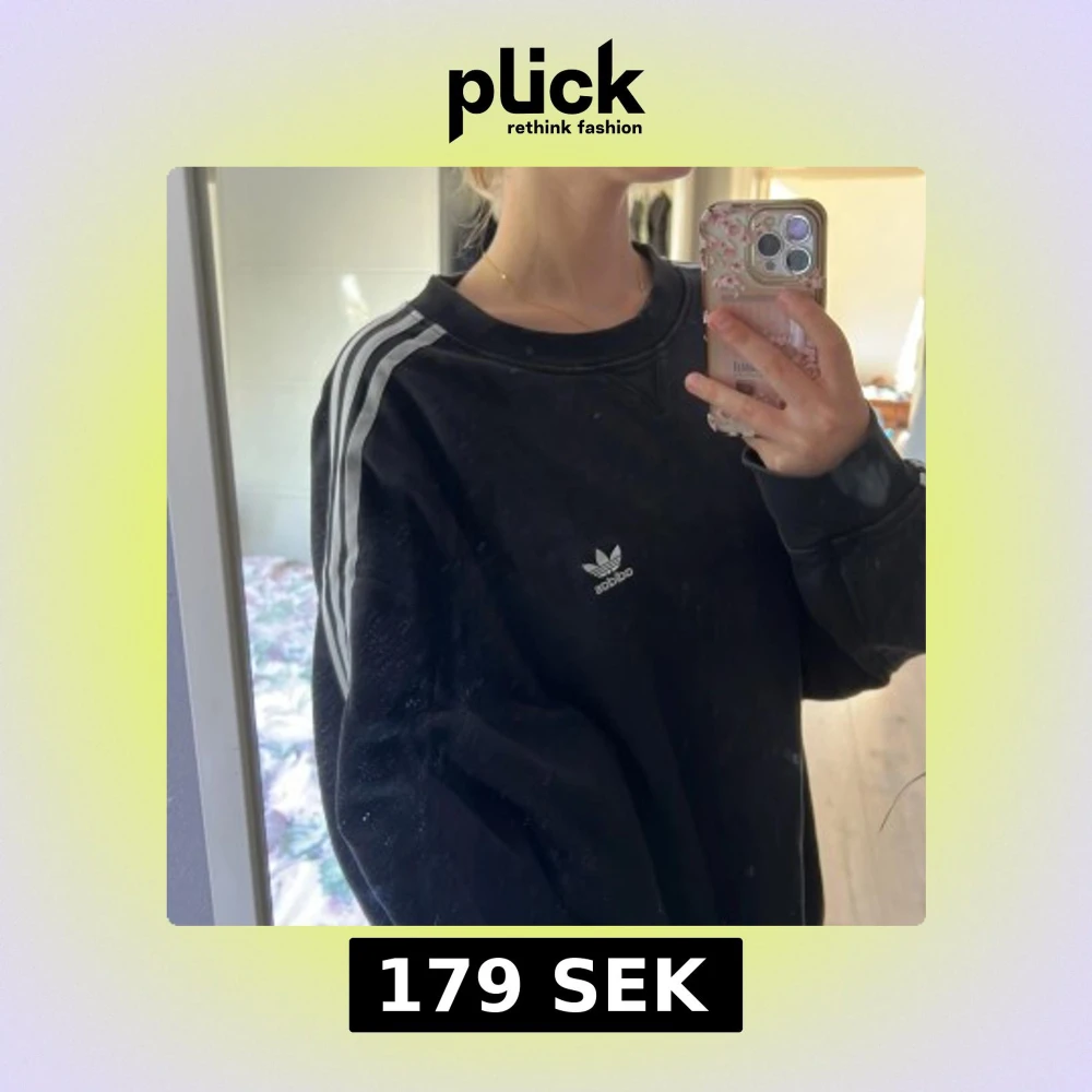 Svart sweatshirt från Adidas med klassiska vita ränder längs ärmarna och Adidas logga på bröstet. Tröjan har en loose passform och är långärmad, perfekt för en chill och sportig stil. Tillverkad i mjuk bomullsmix för extra komfort.