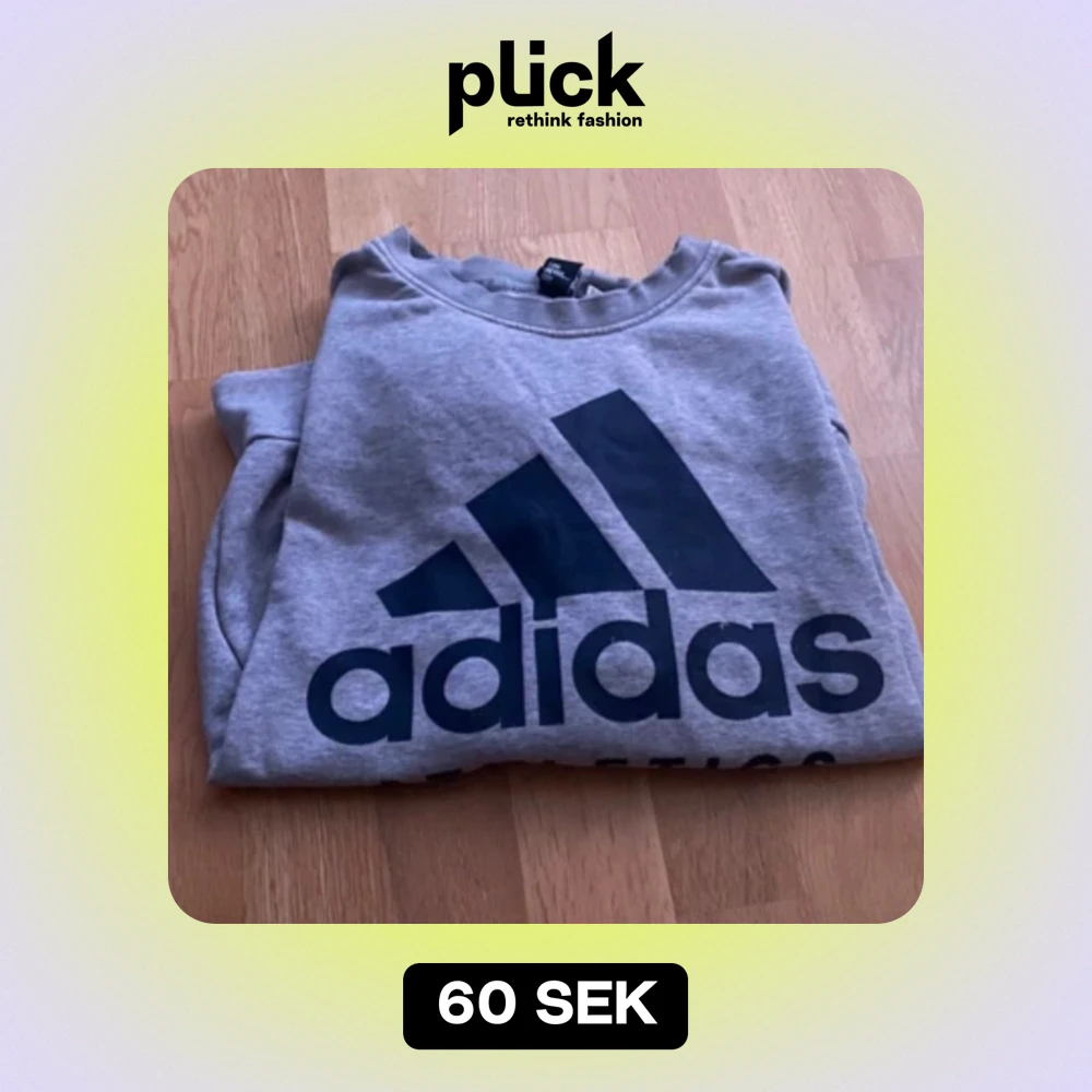 Grå sweatshirt från Adidas - Säljer en grå sweatshirt från Adidas med det klassiska trefoil-logotypen tryckt på framsidan. Tröjan har långa ärmar och en rund halsringning. Perfekt för en avslappnad stil.Lite sliten och nopprig på sina ställen men ändå bra skick👍Också vuxen storlek på denna