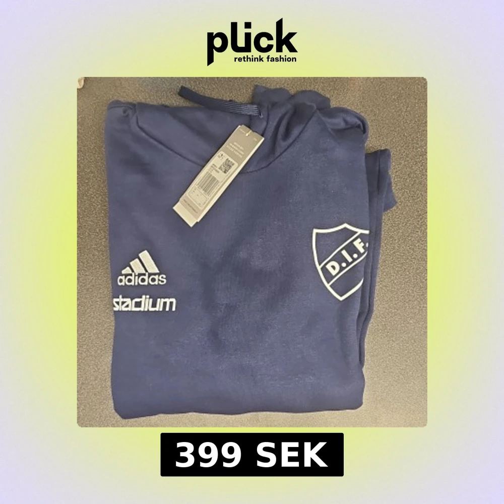 Säljer en snygg mörkblå hoodie från Adidas med DIF-logga på bröstet. Tröjan har en klassisk känguruficka och justerbar huva med dragsko. Perfekt för alla DIF-fans! 💙