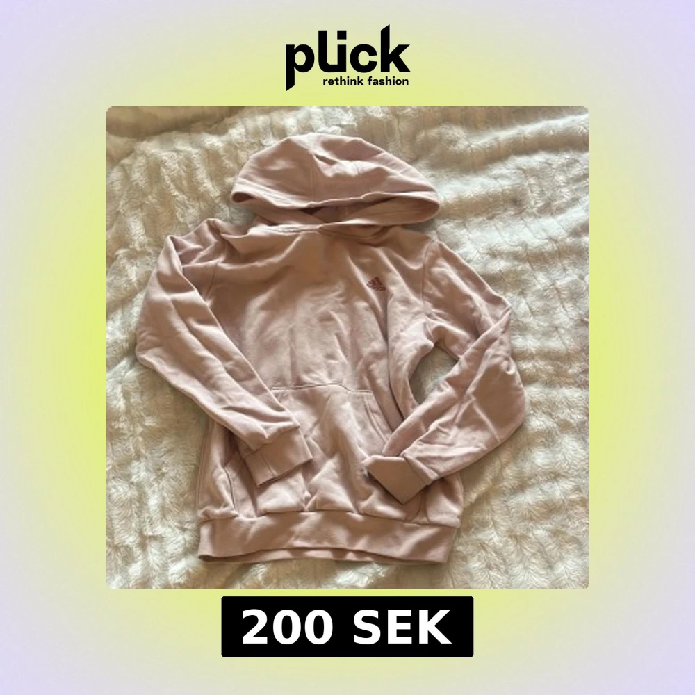 Säljer en ljusrosa hoodie från Adidas med klassisk logga på bröstet. Tröjan har huva, magficka och långa ärmar med muddar. Mjuk och skön i bomullsmix, perfekt för chill dagar eller när du vill ha en enkel och snygg look.