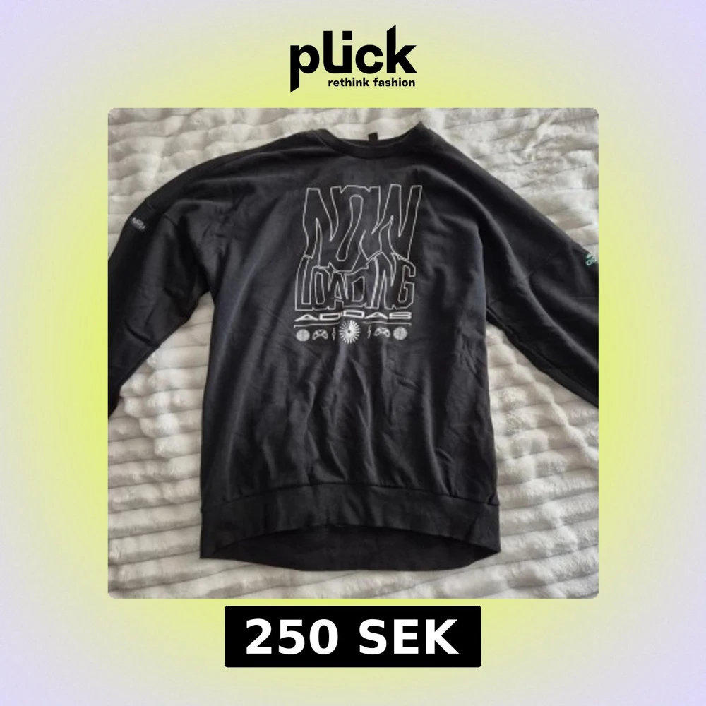Svart sweatshirt från Adidas i bomull med stort grafiskt tryck på bröstet där det står 'NOW LOADING'. Tröjan har rund hals, långa ärmar och en relaxed passform. Perfekt för dig som gillar streetwear och gaming vibes.