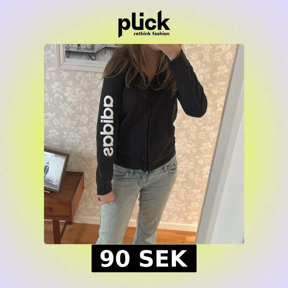 Svart Adidas hoodie med dragkedja
