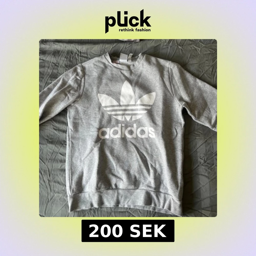 Säljer en grå sweatshirt från Adidas med det klassiska trefoil-logotypen i vitt på framsidan. Tröjan har långa ärmar och en rund halsringning. Perfekt för en avslappnad stil.
