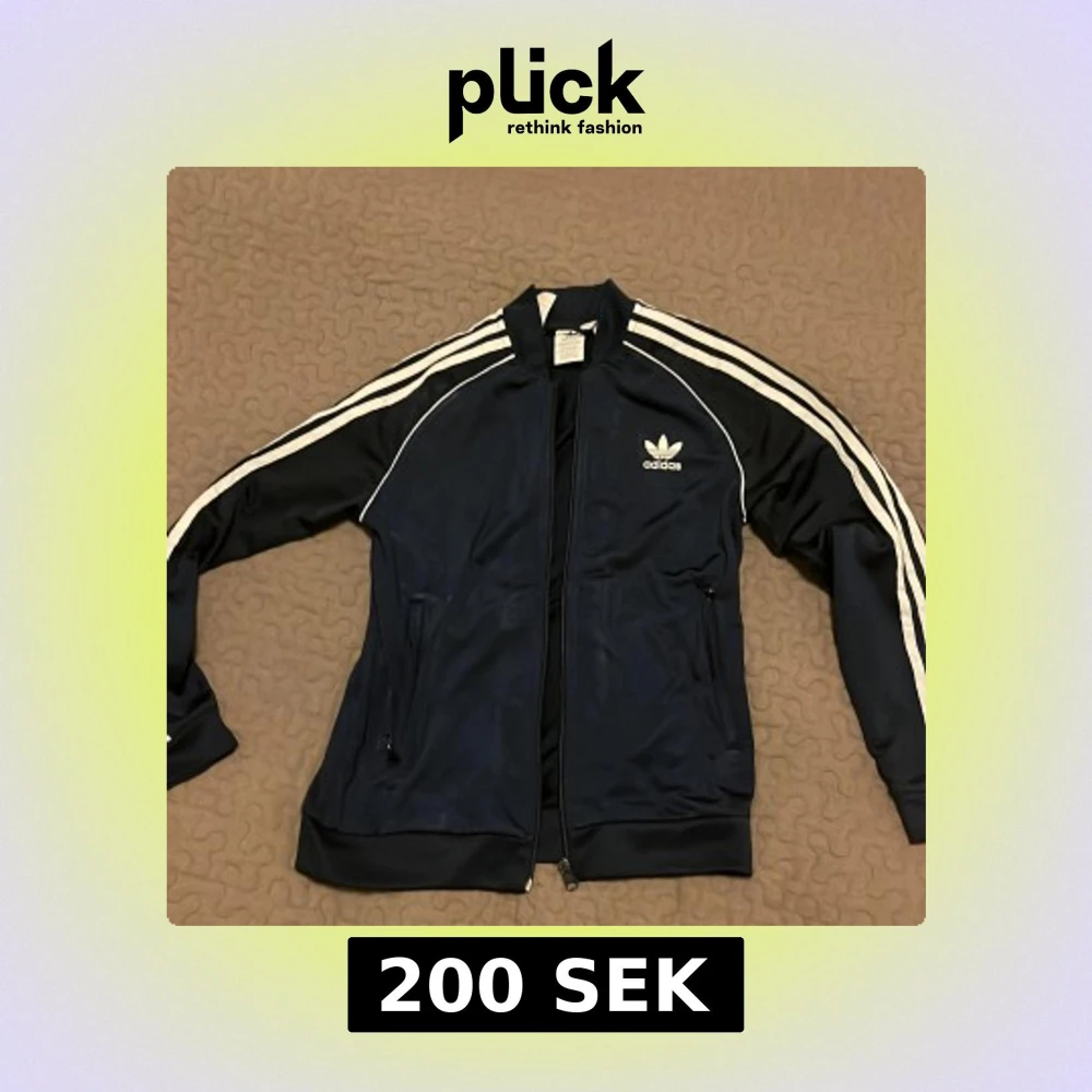 Adidas zip i jätte bra skick förutom att en av dragkedjorna är trasig. Den är storlek 12-13/ XS