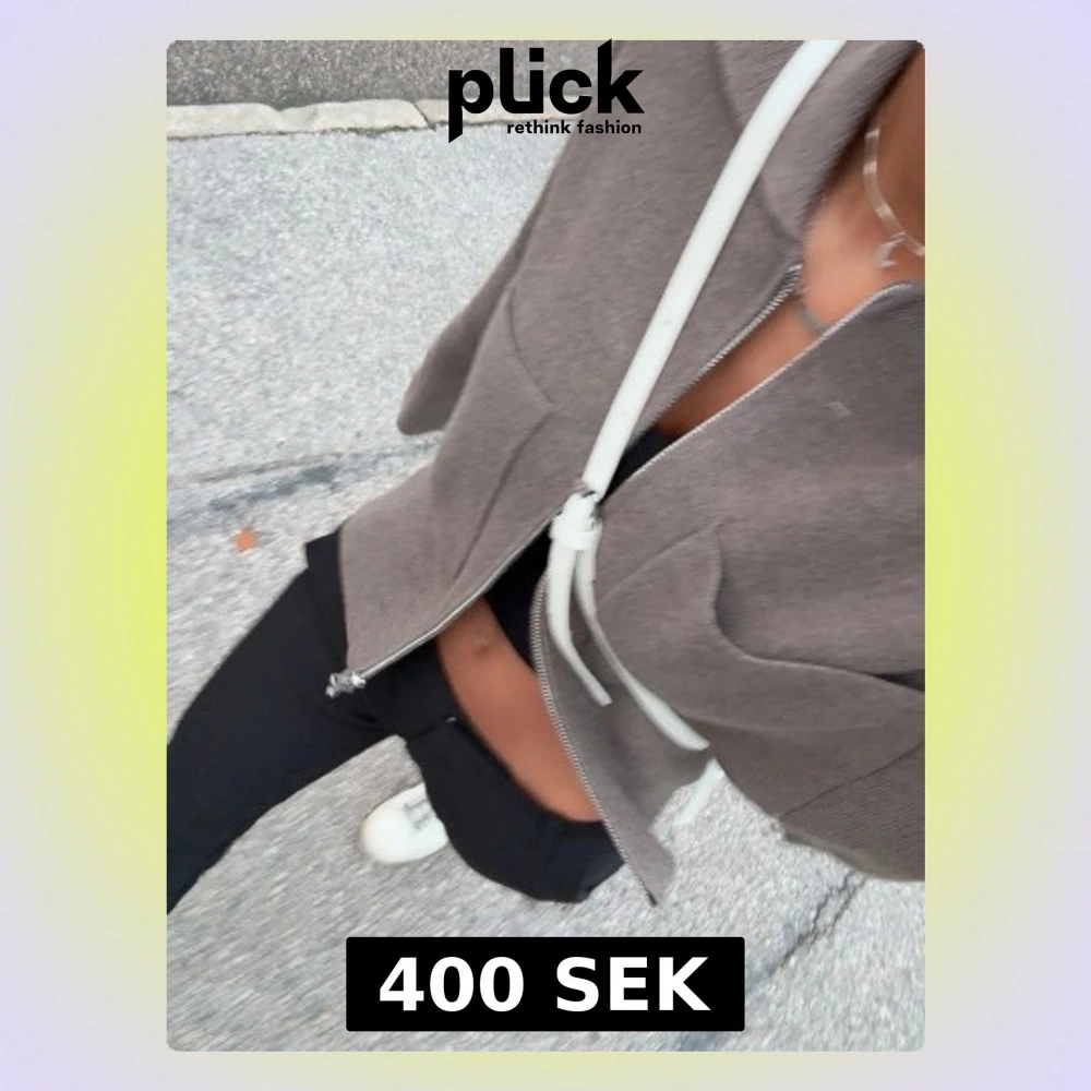 Snygg beige ziptröja med krage och två stora fickor framtill. Tröjan är croppad och har långa ärmar. Perfekt till ett par höga jeans eller byxor för en clean och modern look. Använt en gång, säljer pågrund av att jag ville att den skulle sitta tajtare 🫶🏼