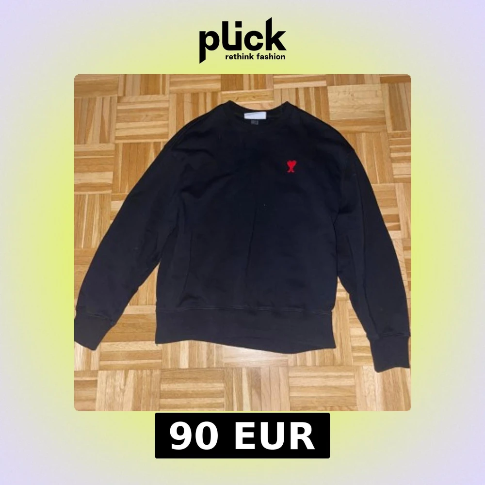 Svart sweatshirt från AMI med klassisk rund hals och lång ärm. På bröstet finns ett broderat rött hjärta med A, vilket ger en snygg detalj. Tröjan har ribbade muddar vid ärmslut och nederkant. Perfekt för dig som gillar stilrena plagg med en twist.