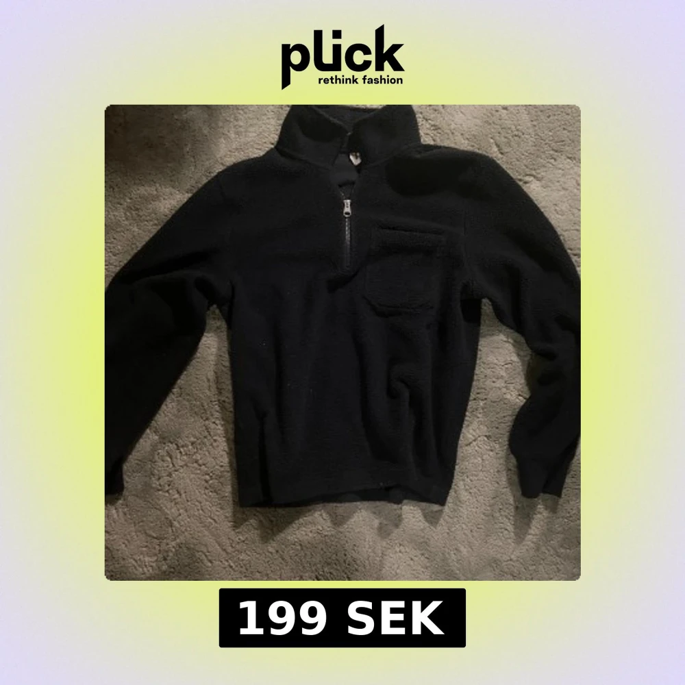 Mysig svart fleece-tröja i storlek S med half zip och hög krage. Tröjan har en bröstficka och är tillverkad i mjukt, fluffigt fleecematerial som håller dig varm. Perfekt för kyliga dagar och chill hemma. Långärmad och enkel att matcha med jeans eller mjukisbyxor. Nypris - 699kr