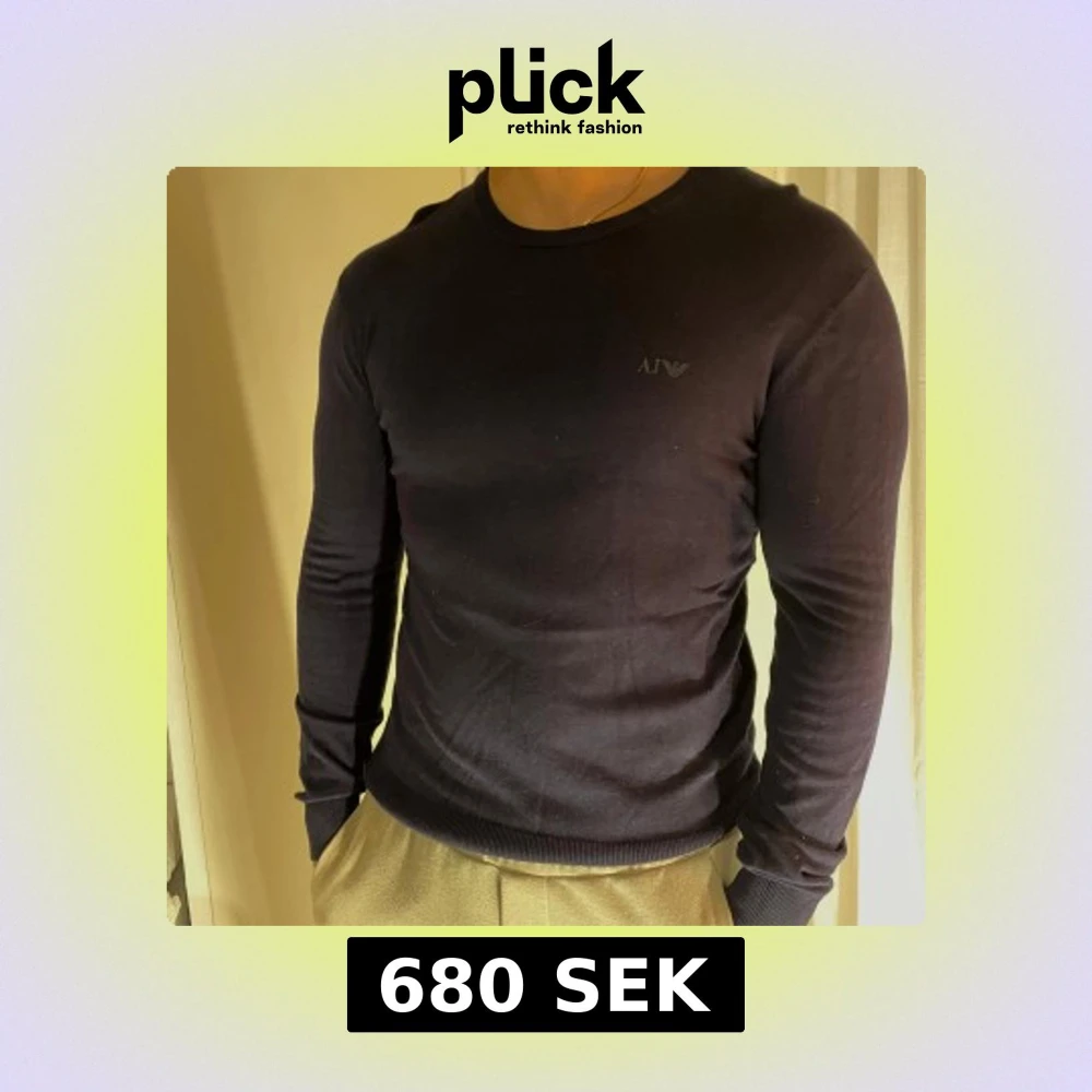 Snygg marinblå långärmad tröja från Armani med diskret logga på bröstet. Perfekt för en stilren look.