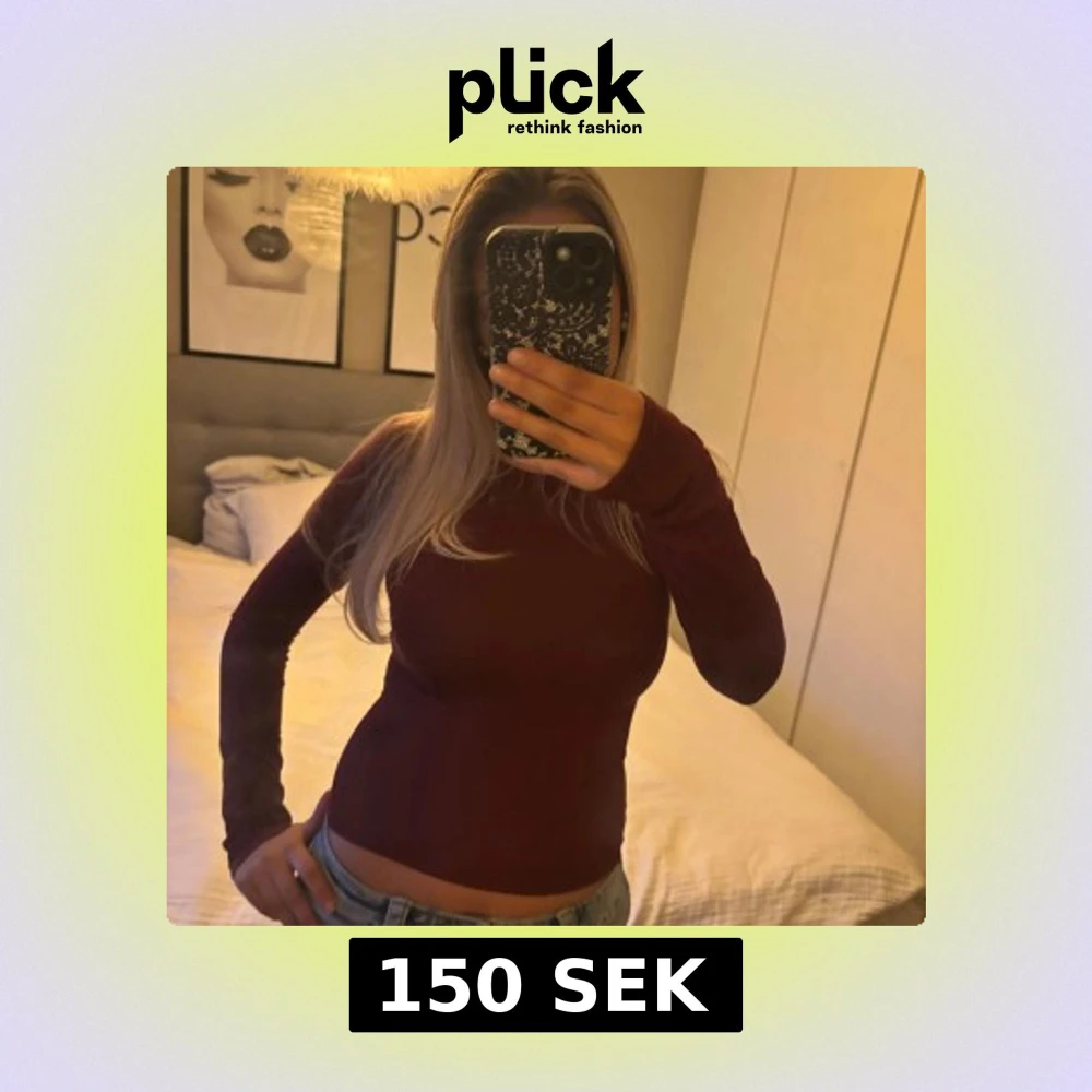Säljer en vinröd långärmad topp med rund hals och tight passform. Tröjan är enkel och stilren utan mönster eller detaljer, perfekt att matcha med jeans eller kjol. Materialet känns mjukt och stretchigt, vilket gör den skön att bära.