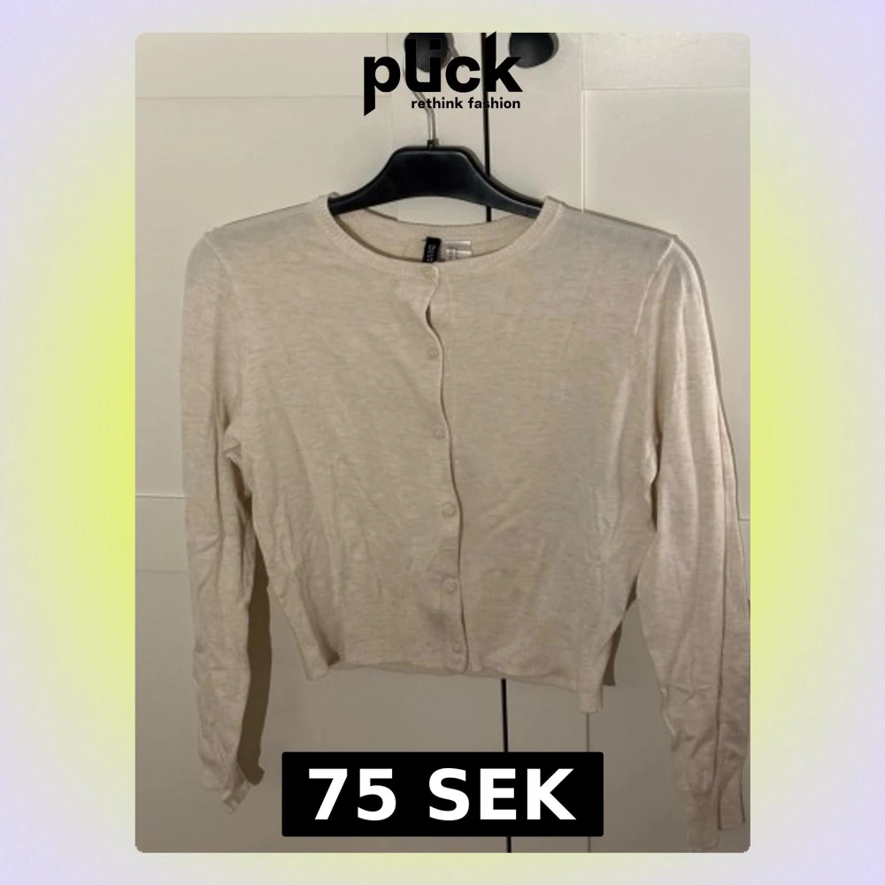 Säljer en stilren beige kofta från H&M med rund halsringning och knäppning framtill. Koftan har långa ärmar och ribbade muddar vid ärmslut och nederkant. Ny och nästan aldrig använd! Kan diskutera pris, Storleken är M men skulle säga att den är xs