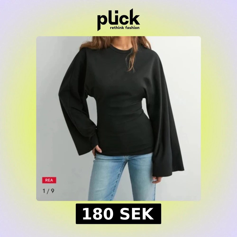 Snygg svart långärmad topp med riktigt vida ärmar och figurnära passform i midjan. Enkel design med rund halsringning, perfekt för dig som gillar stilrena plagg med en twist. Materialet känns mjukt och stretchigt, vilket gör den bekväm att bära hela dagen. (OANVÄND!)