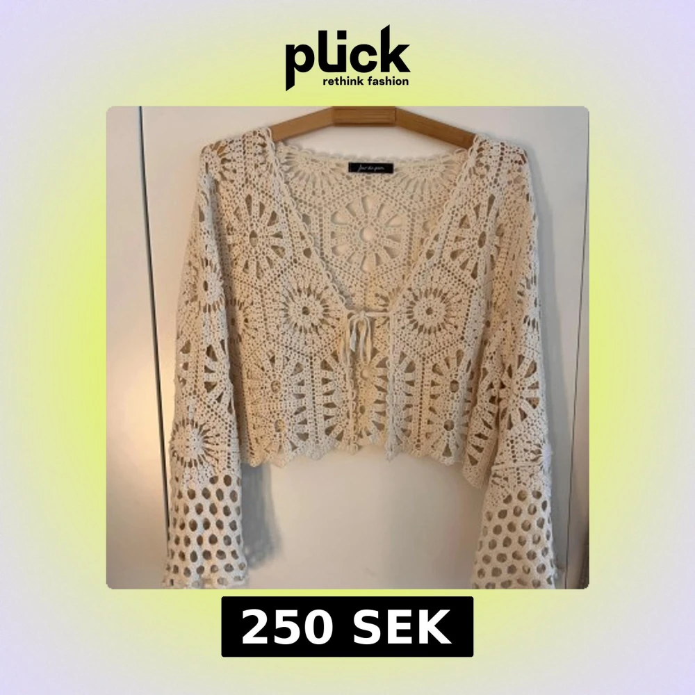 Säljer en vacker beige spetskofta/bolero med ett unikt virkat mönster. Koftan har långa ärmar och en knytning framtill. Perfekt för att lägga till en bohemisk touch till din outfit. ny och oanvänd utan prislapp