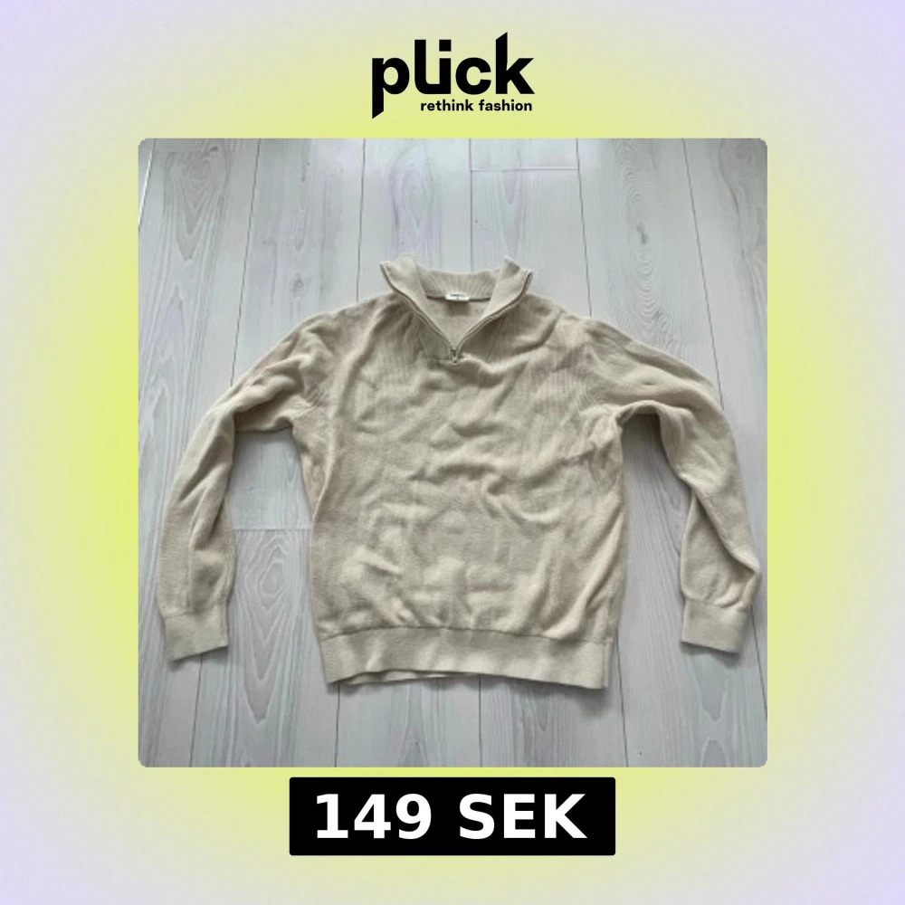 Snygg beige ribbad tröja från Kappahl med half zip och hög krage. Tröjan är långärmad och har en klassisk, normal passform. Passar XS/S, Skicka vid intresse!