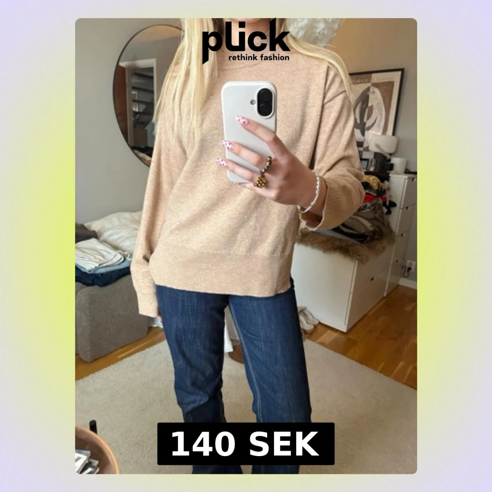 Säljer en beige stickad tröja med rund halsringning och långa ärmar. Jätteskön o snygg o gjord i ett mjukt material. Enkel att styla med jeans eller kjol🙏🏽💞💝😇