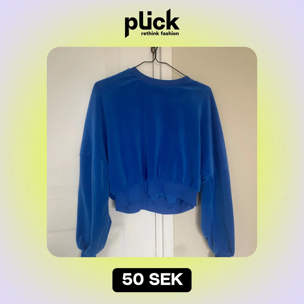 Säljer en superfin blå croppad tröja i mjukt material. Perfekt för en avslappnad stil och passar bra till både jeans och kjol. Tröjan har långa ärmar och en bekväm passform. Perfekt för vår och sommar!