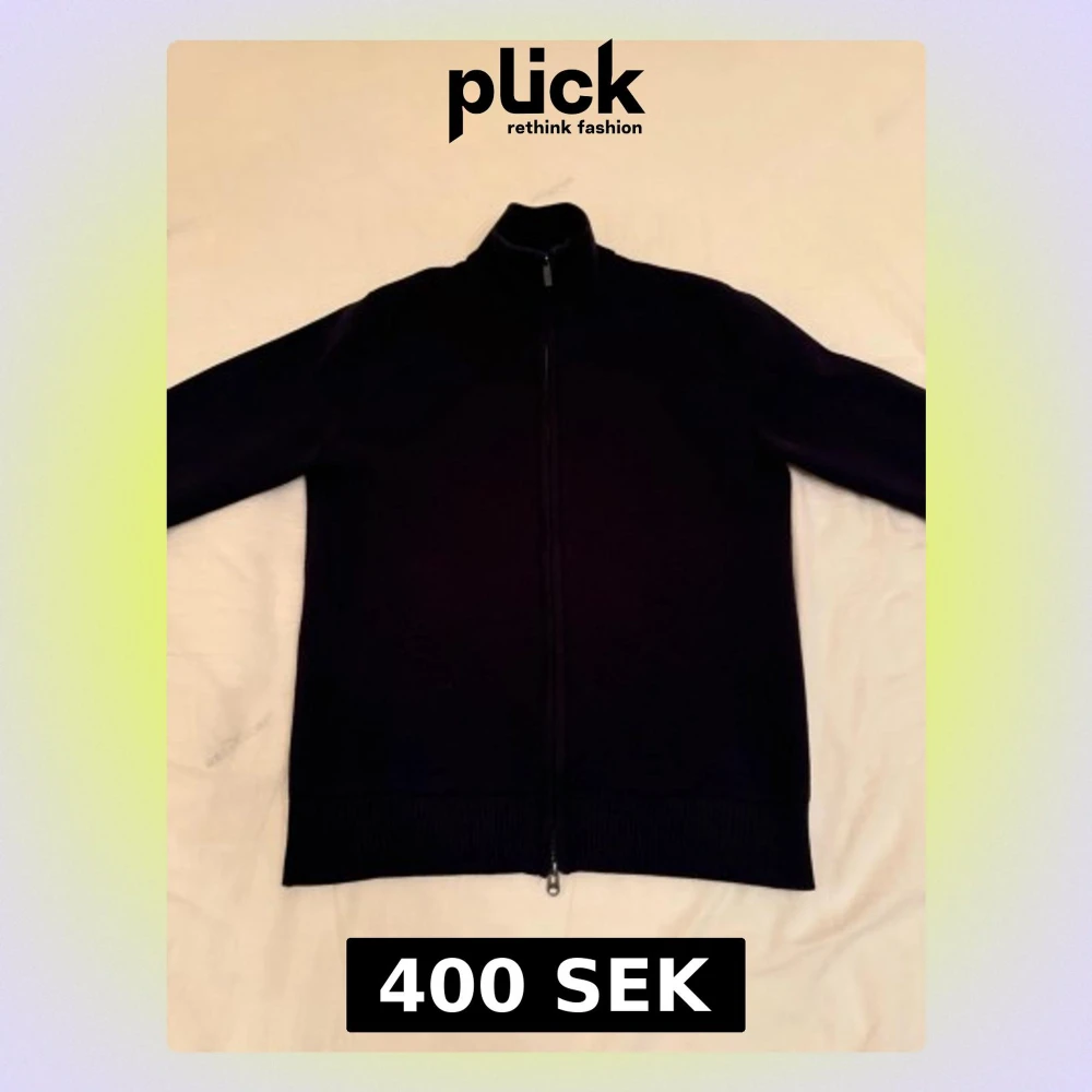 Snygg marinblå ziptröja med hög krage och hel dragkedja framtill. Tröjan har en minimalistisk design och ribbade muddar vid ärmslut och nederkant. Perfekt att slänga på sig över en t-shirt för en clean look.