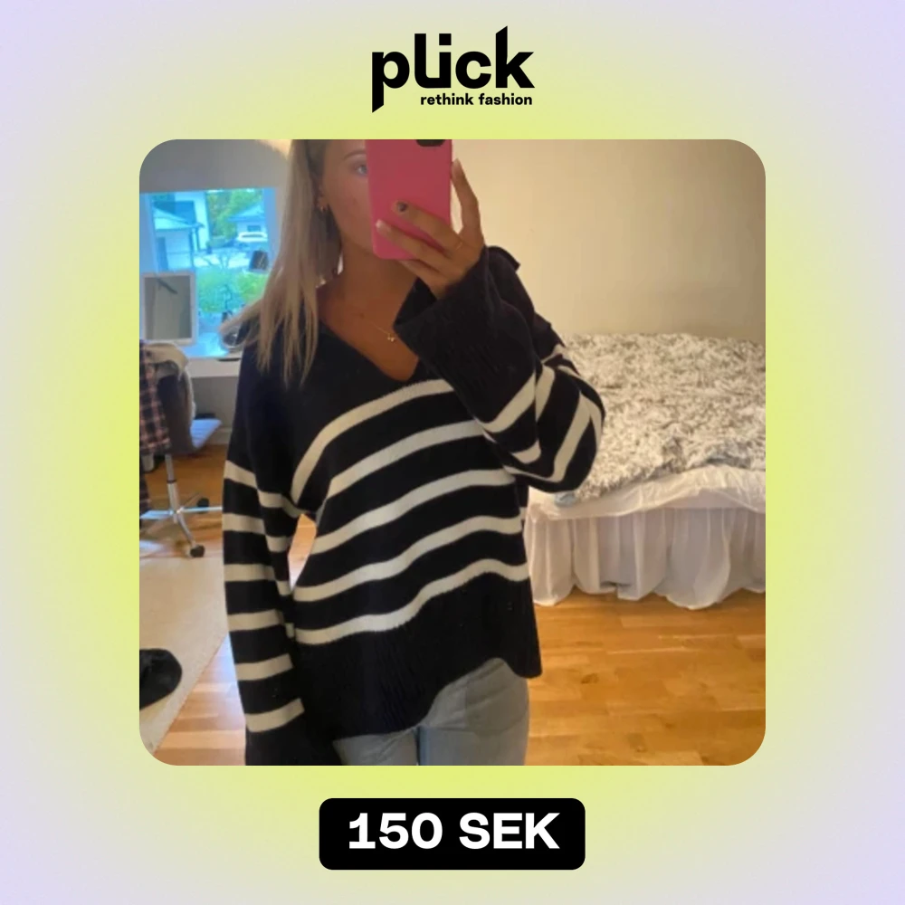 En superfin stilren v-ringad blårandig tröja med píke💕 använd endast en gång