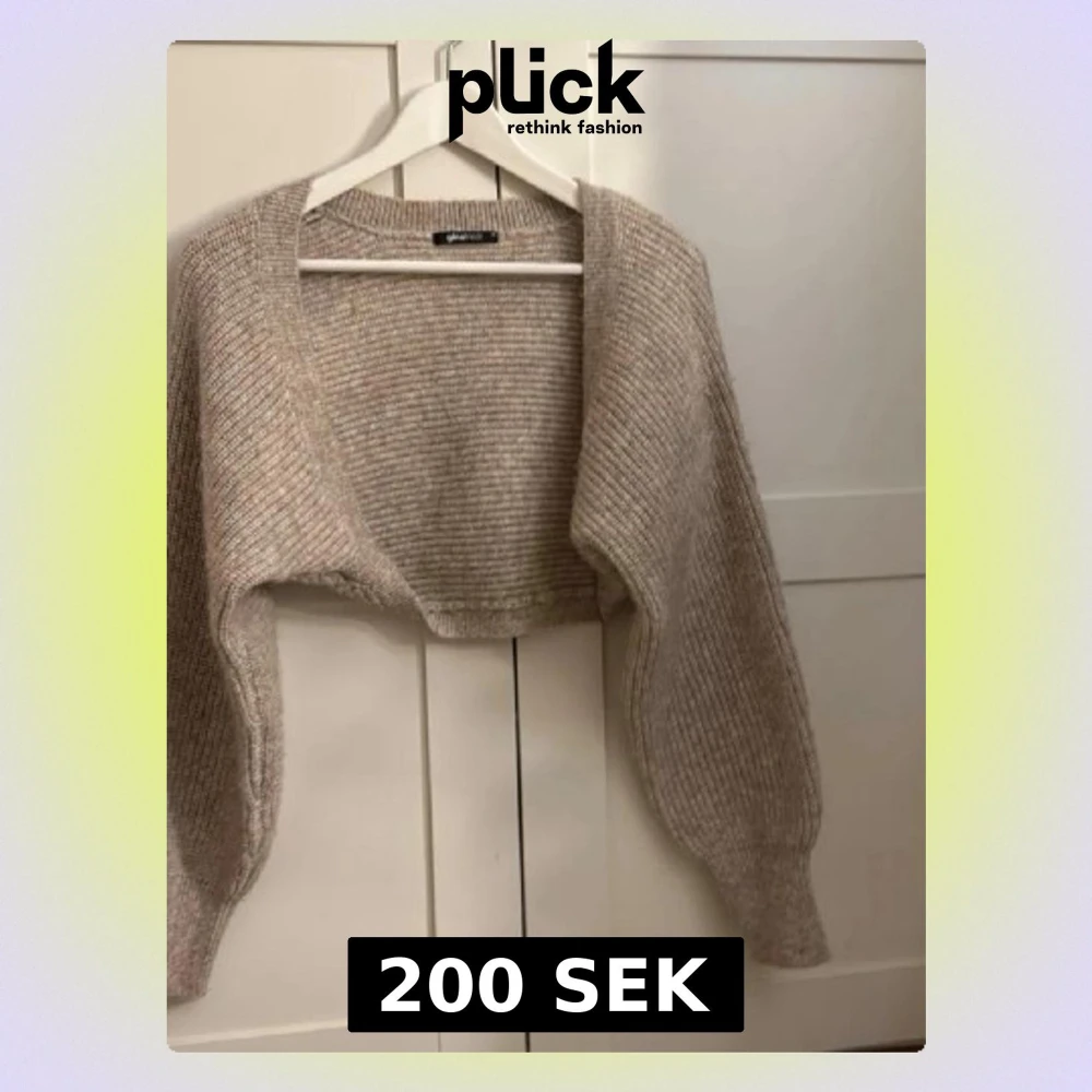 En beige bolero från Gina Tricot. Jag köpte den av en tjej här på Plick men passade inte mig, bilderna är från tjejen jag köpte av.