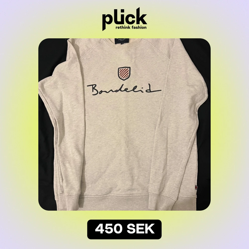 Säljer en stilren grå sweatshirt från Bondelid i storlek L. Tröjan har ett klassiskt tryck på bröstet och är perfekt för både vardag och avslappnade tillfällen. Den är i mycket bra skick och superbekväm att ha på sig. Passar perfekt till jeans eller chinos!