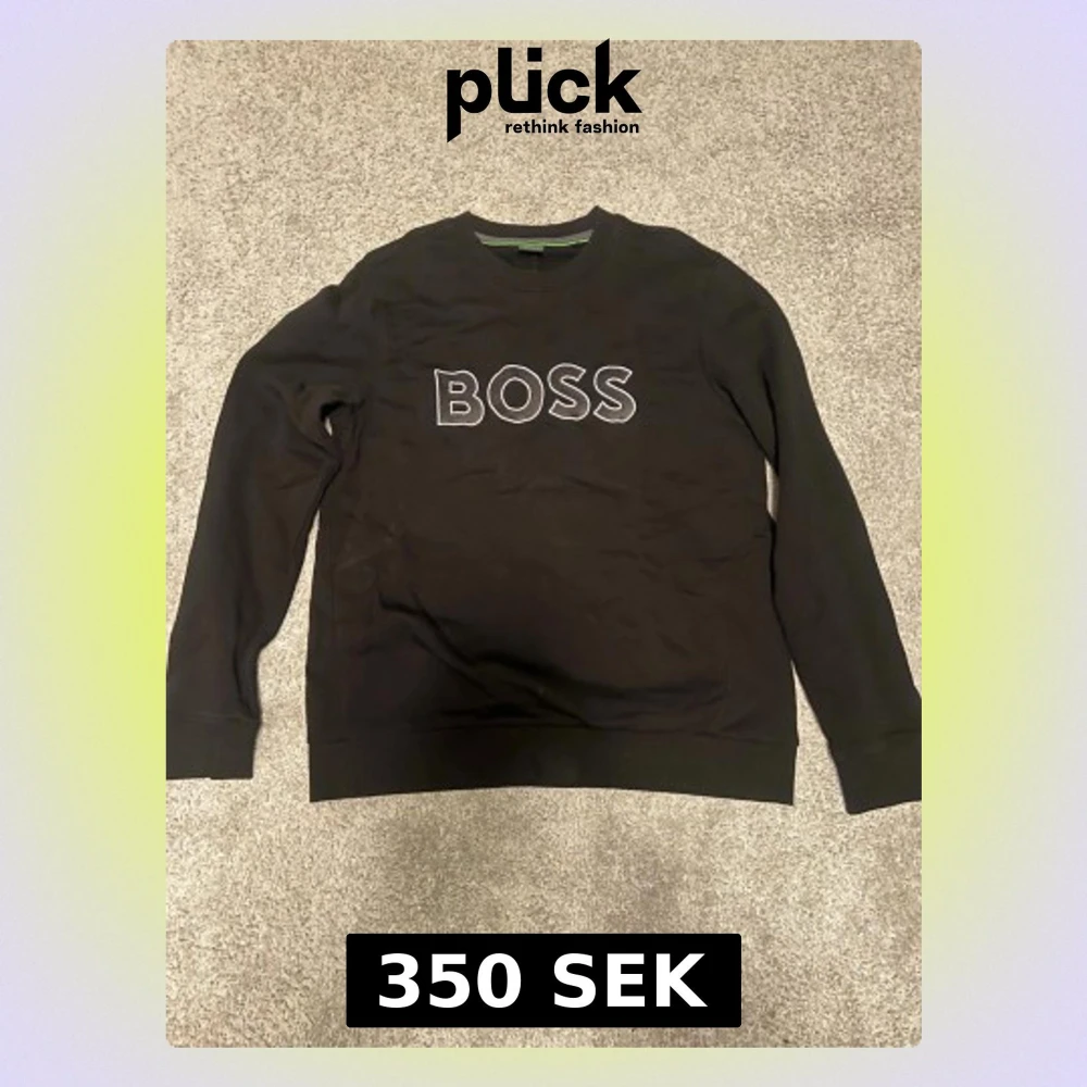 Stilren svart sweatshirt från BOSS med vit broderad logga på bröstet. Tröjan har rund halsringning, långa ärmar och ribbade muddar vid ärmslut och nederkant. Perfekt för en avslappnad och trendig look.