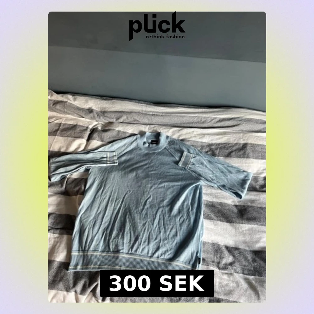 Snygg ljusblå tröja från BOSS i storlek L. Tröjan har ribbade muddar vid hals, ärmslut och nederkant samt diskreta vita ränder på ärmar och nederkant. Tillverkad i mjuk bomull, perfekt för vår och sommar. Enkel och clean design som funkar till många stilar. Kom privat vid bild på