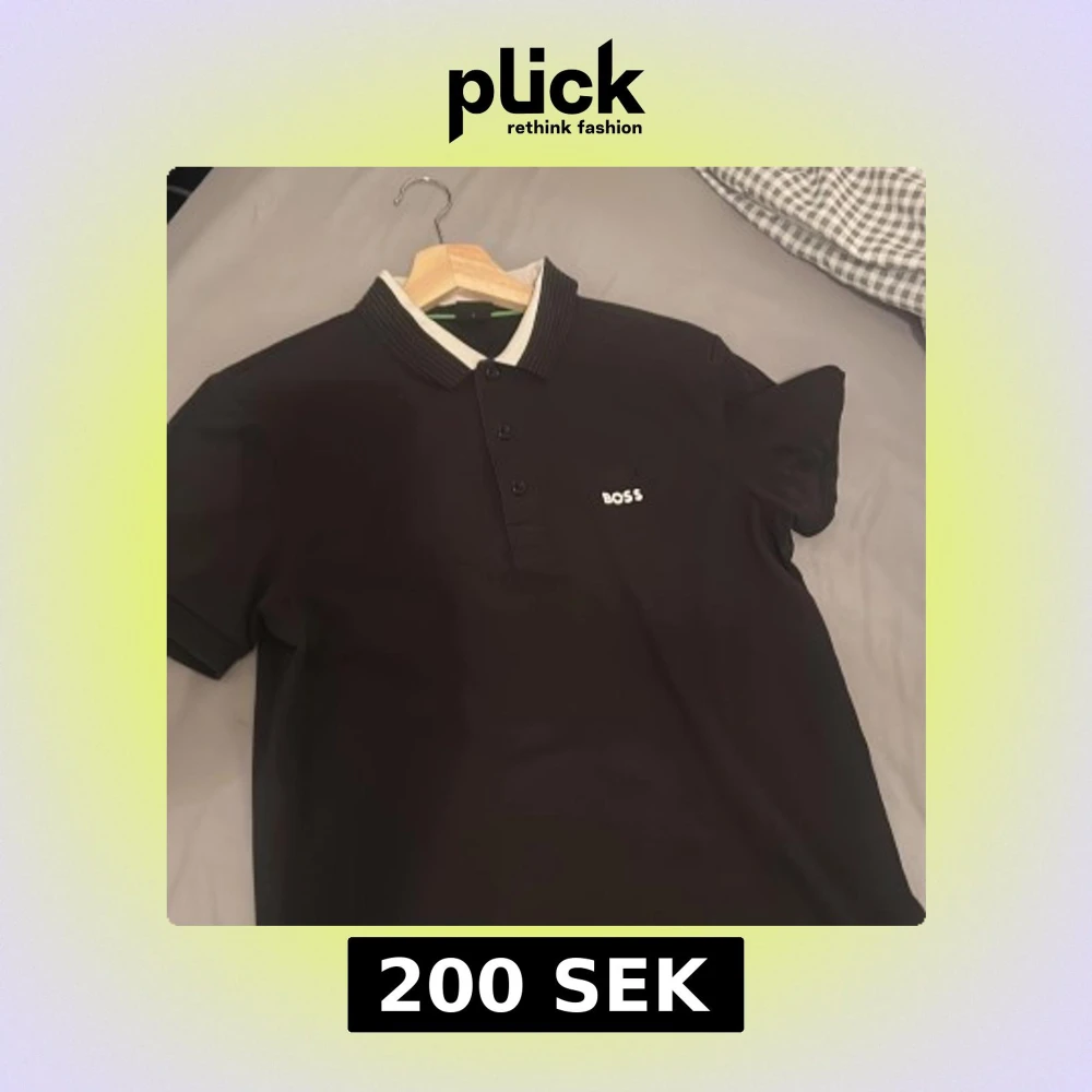Snygg svart pikétröja från BOSS med vit logga på bröstet och ribbad krage i svart och vitt. Tröjan har tre knappar framtill och korta ärmar. Perfekt för dig som gillar stilrena och klassiska plagg med premiumkänsla. Två små håll finns vid bossen märker