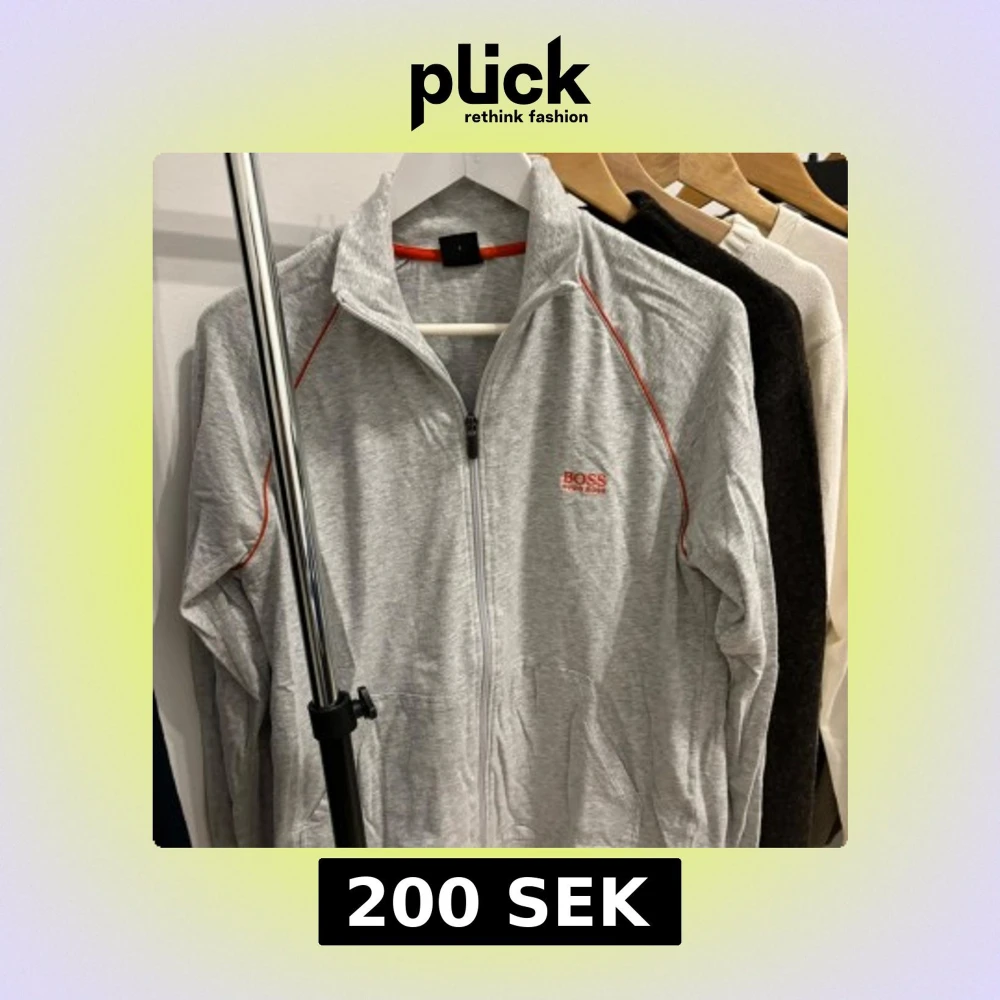 Snygg grå zip-tröja från Hugo Boss med röd/orange detaljer och logga på bröstet. Väldigt skönt och mjukt material. Tröjan har en dragkedja framtill och är långärmad med matchande shorts. Det är ett set. Nypris: 899kr