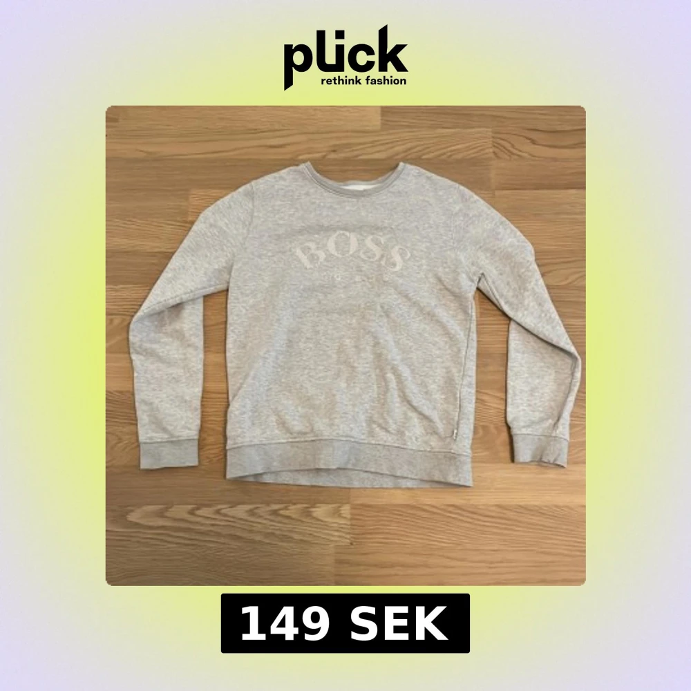 Säljer en stilren ljusgrå sweatshirt från BOSS med broderad logga framtill. Tröjan har rund halsringning och långa ärmar. Perfekt för en avslappnad och snygg look.
