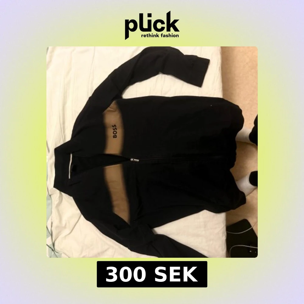 Snygg svart tröja från BOSS med guld panel över bröstet och diskret logga. Tröjan har dragkedja framtill och klassisk krage. Perfekt för dig som vill ha en stilren och modern look.