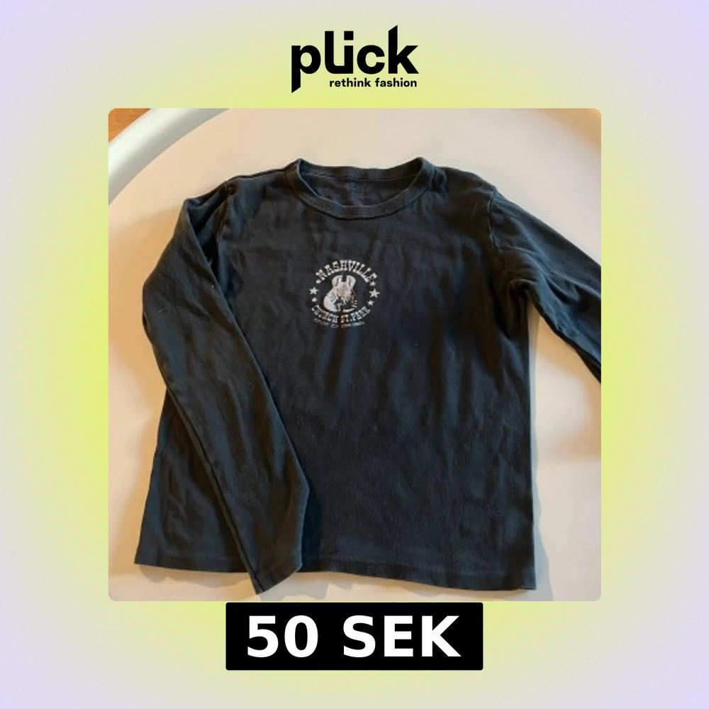 Svart långärmad tröja med tryck framtill där det står 'Nashville Church St. Peer' och en gitarr i mitten. Skön basic modell i bomull, perfekt för dig som gillar musikvibbar och streetstyle.
