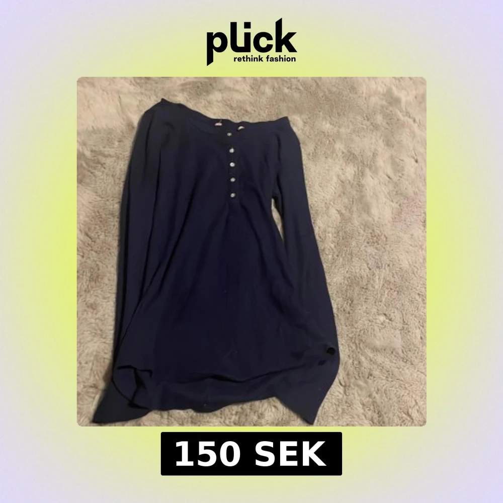 En stilren mörkblå långärmad tröja med dekorativa knappar framtill. Perfekt för dig som gillar enkel och klassisk stil. passar bra till jeans eller kjol. Tyvärr är märket bort klippt med den är i från brandy Melville, står inte storlek men skulle säga att den passar nån som har Xs eller S. Har själv storlek Xs och S och den passar mig.