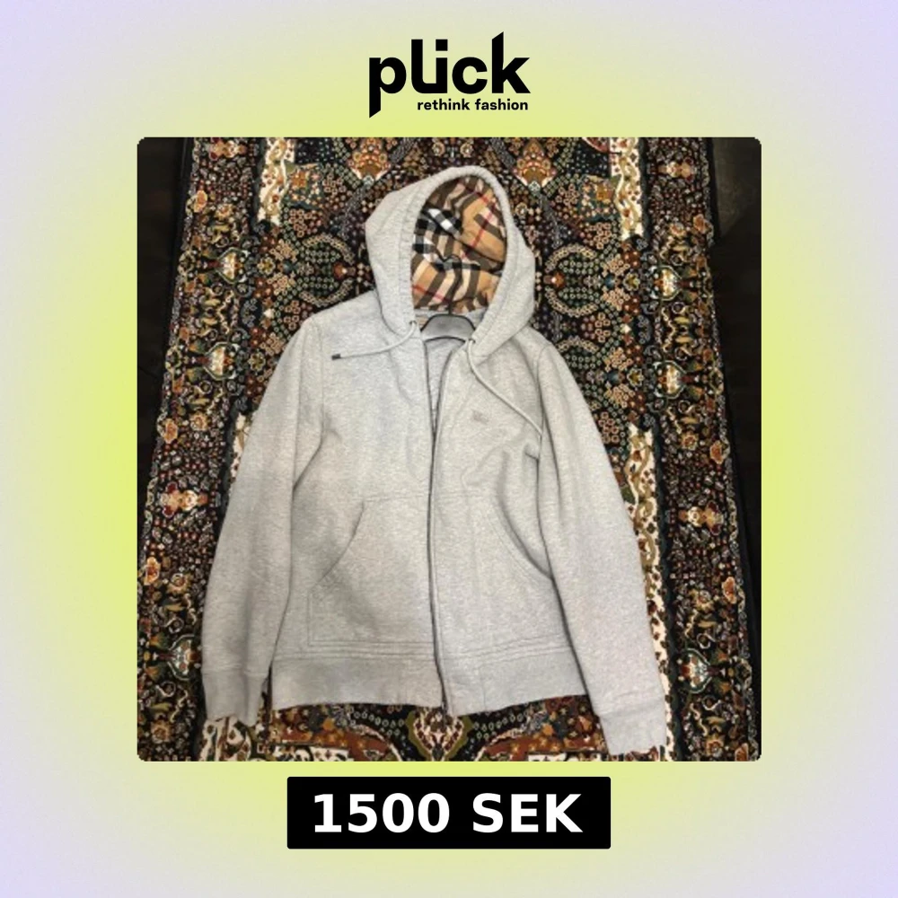 Säljer en grå hoodie från Burberry i bomull med dragkedja och klassisk rutig insida i huvan. Tröjan har broderad logga på bröstet, snörning i huvan och två fickor framtill. Perfekt för dig som vill ha en stilren men ändå lyxig look. Pris kan diskuteras vid snabb affär