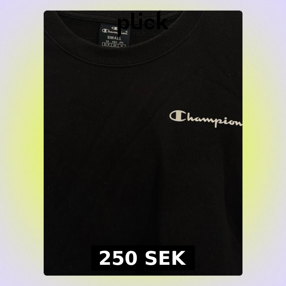 Svart långärmad sweatshirt från Champion i mjuk bomull. Klassisk rund hals och logotyp tryckt på bröstet samt liten logga på ärmslutet. Perfekt för chill dagar och enkel att matcha med jeans eller joggers.